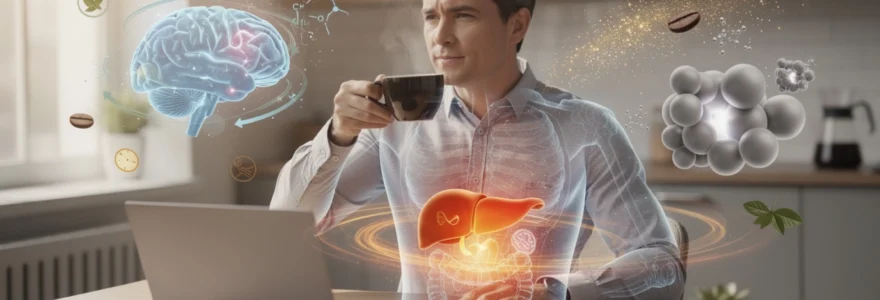 Grâce à sa structure lipophile et de petite taille, la caféine traverse aisément la barrière hémato-encéphalique, cette frontière protectrice qui sépare la circulation sanguine du tissu cérébral. Après ingestion, la concentration plasmatique de caféine atteint généralement un pic entre 30 et 60 minutes, moment où vous ressentez le plus nettement l’effet stimulant du café sur la vigilance. Sa demi-vie moyenne est de 3 à 7 heures chez l’adulte sain, ce qui signifie qu’une partie significative de la molécule circule encore dans votre organisme en fin de journée si vous avez consommé du café l’après-midi. Chez la femme enceinte, les fumeurs ou en cas d’insuffisance hépatique, ce temps d’élimination peut être significativement modifié, imposant d’adapter la quantité de café et le moment de consommation pour préserver la qualité du sommeil et la santé cardiovasculaire.